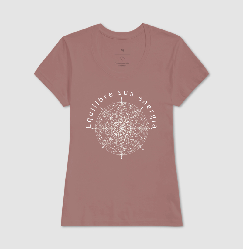 A Camiseta Mandala Equilibre Sua Energia tem uma proposta mais ousada com um design minimalista com linhas delicadas porém assimétricas demonstrando que mesmo com linhas de padrões geométricos simples e irregulares pode obter harmonia e equilíbrio. Possui um estilo elegante, focando no equilíbrio e na calma.